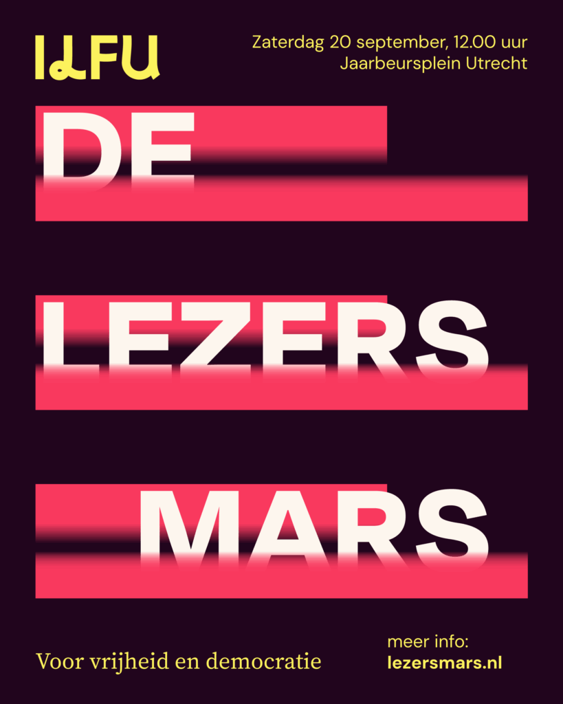 Op zaterdag 20 september trapt literatuurfestival ILFU af met een mars van lezers, schrijvers en boekenliefhebbers dwars door de Utrechtse binnenstad. De mars vormt een symbolisch weerwoord van boekenliefhebbers tegen censuur, autocratie en andere ondemocratische bewegingen die overal ter wereld opduiken. Tijdens de lezersmars houden alle deelnemers hun boeken in de lucht. Kies het boek dat voor jou hoop, vrijheid en saamhorigheid symboliseert. Kies het boek waarvan jij vindt dat iedereen het moet lezen als het ultieme antwoord op onverschilligheid, onvrijheid en onderdrukking. De mars gaat van Jaarbeursplein door de binnenstad naar het Domplein. Daar lezen we gelijktijdig hardop voor uit onze meegebrachte boeken. De kakofonie die oprijst uit al die verschillende kelen en boeken symboliseert de krachtige stem van de literatuur.